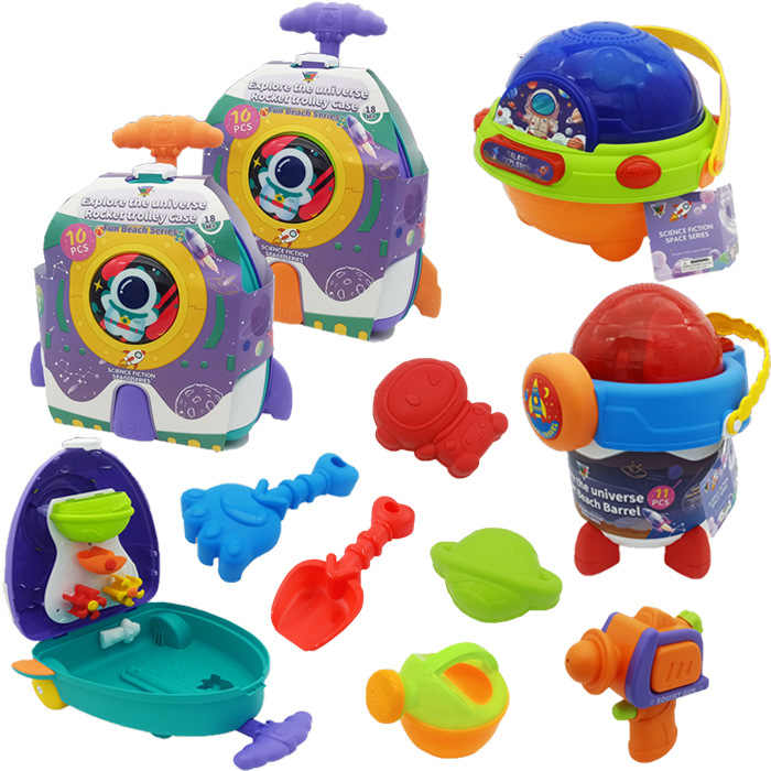 Juego de 10 Juguetes de Playa con Diseño de Cohete Espacial, Carrito de Juguete para Niños, Herramientas de Juego de Arena para el Verano