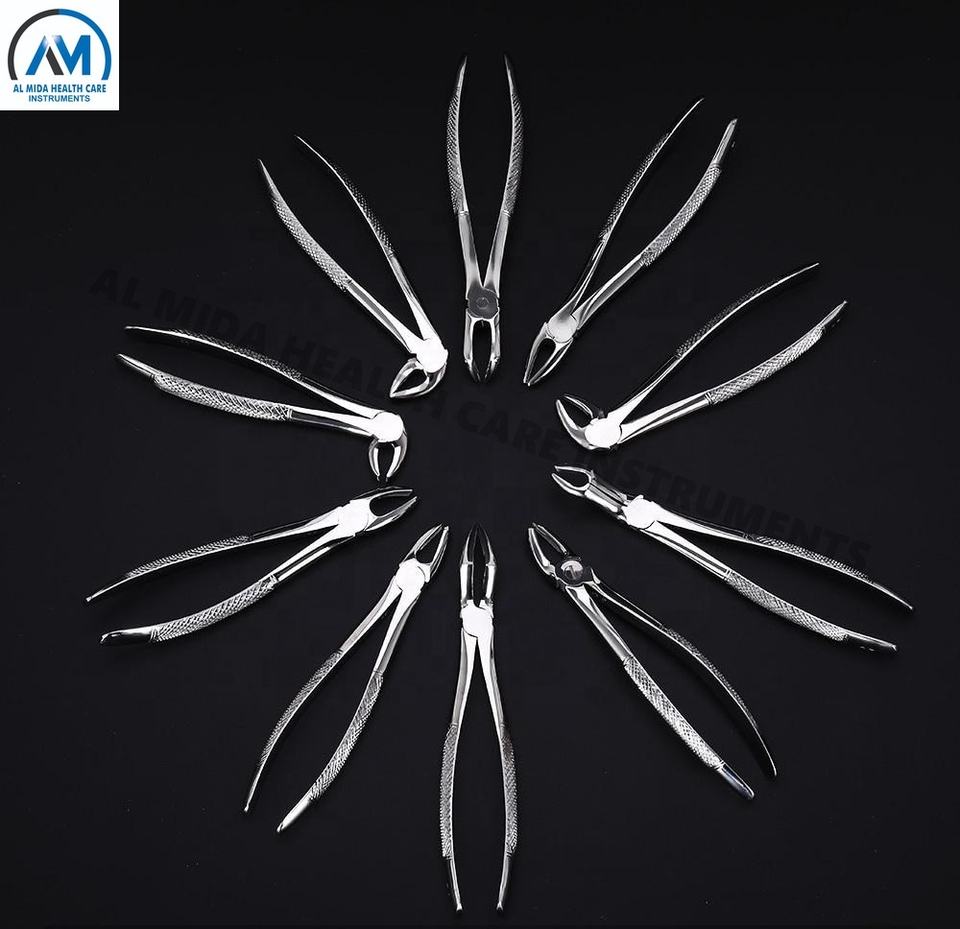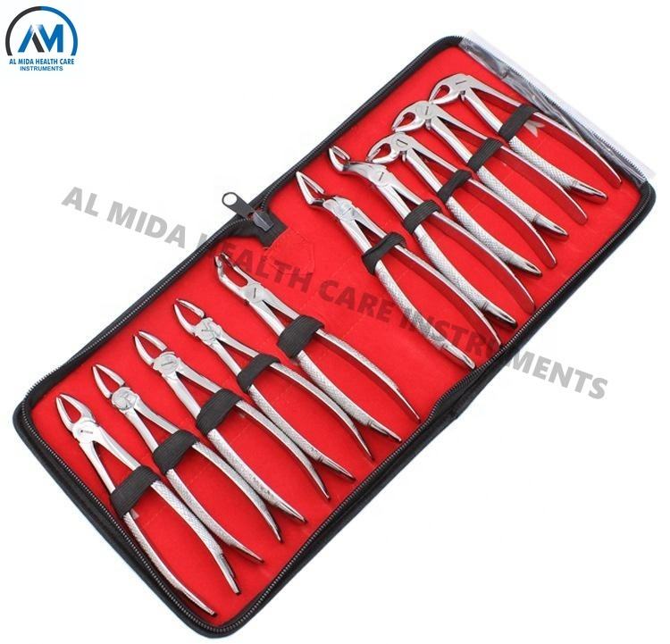 Kit de pinzas de extracción dental para adultos de acero inoxidable de 10 piezas