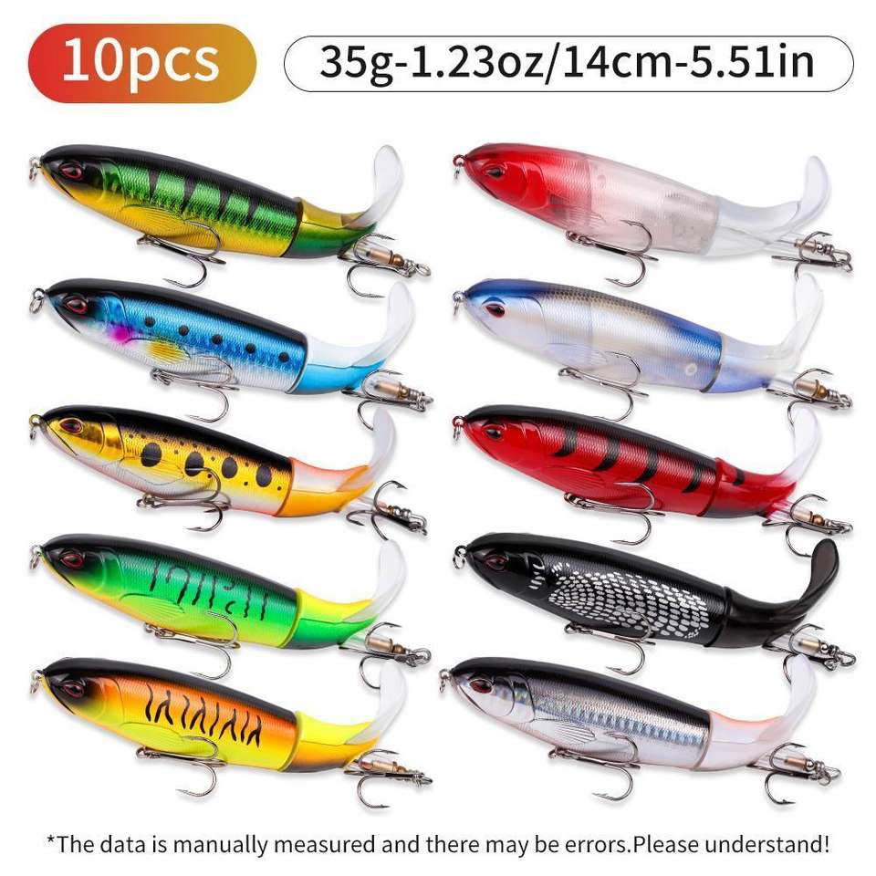 Juego de 10 Señuelos de Pesca de Superficie de 35g y 14cm, Material PP, Cola Giratoria Realista, Cebo Vibrante para Pesca de Besugo