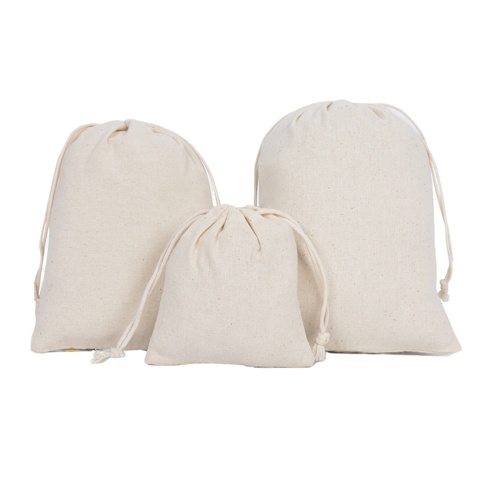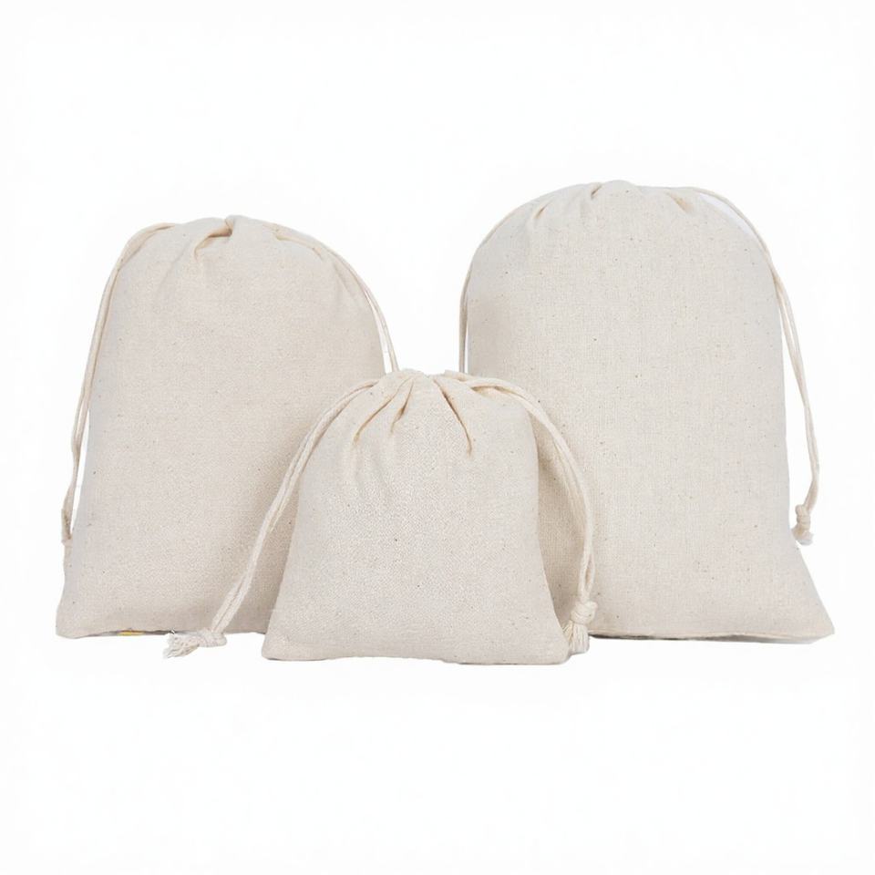 Bolsa de Regalo de Muselina de Algodón Reciclable y Duradera LINNA de 10x12cm con Cordón y Logotipo Personalizado para Dulces, Joyería y Pequeños Objetos
