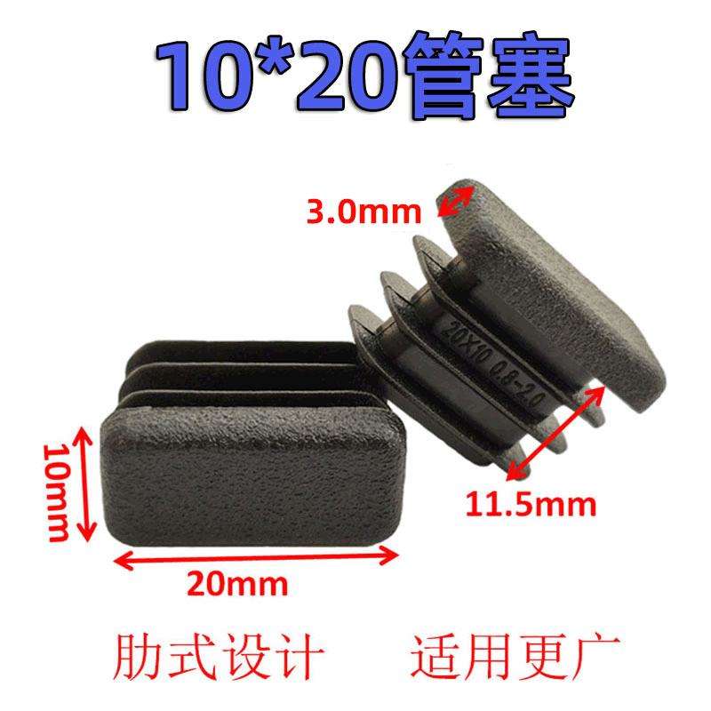 Tapón de tubo rectangular de 10x20 negro con diseño de nervaduras para sellado de tuberías