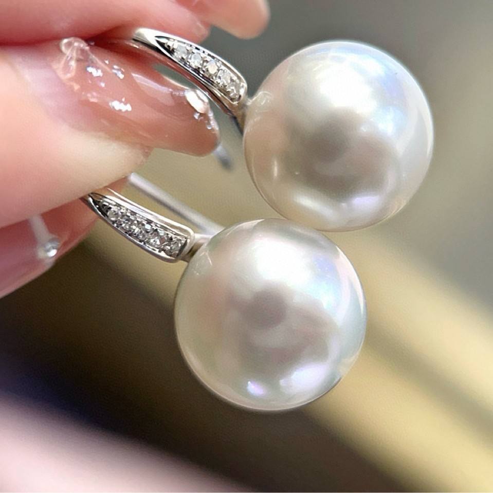 Pendientes de Perlas Naturales de 11-12 mm con Gancho, Plata S925 con Baño de Oro, Comparable a las Perlas Blancas Australianas, Regalo del Fabricante