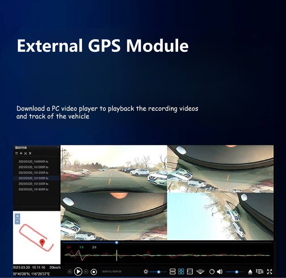 11,8 pulgadas Vista completa Vista panorámica de 360 grados Frente 2K Trasero 1080P 2 canales DVR GPS Coche 360 Espejo retrovisor