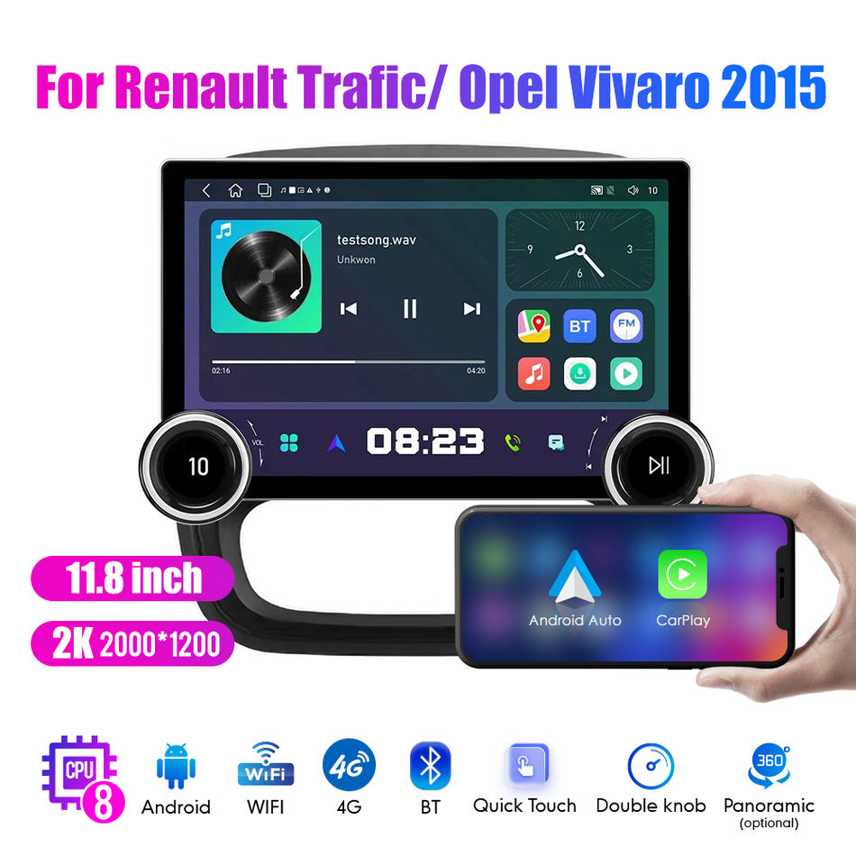 Radio de coche Android 2Din de 11,8 pulgadas para Renault Trafic 2015 2K QLED pantalla estéreo de coche REPRODUCTOR DE DVD Carplay Android Auto