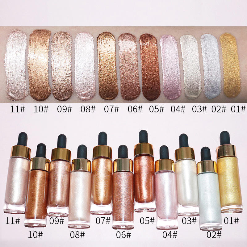 11 colores resaltan la etiqueta privada maquillaje de alta calidad sombra de ojos metálica OEM profesional líquido resaltador iluminador gotas
