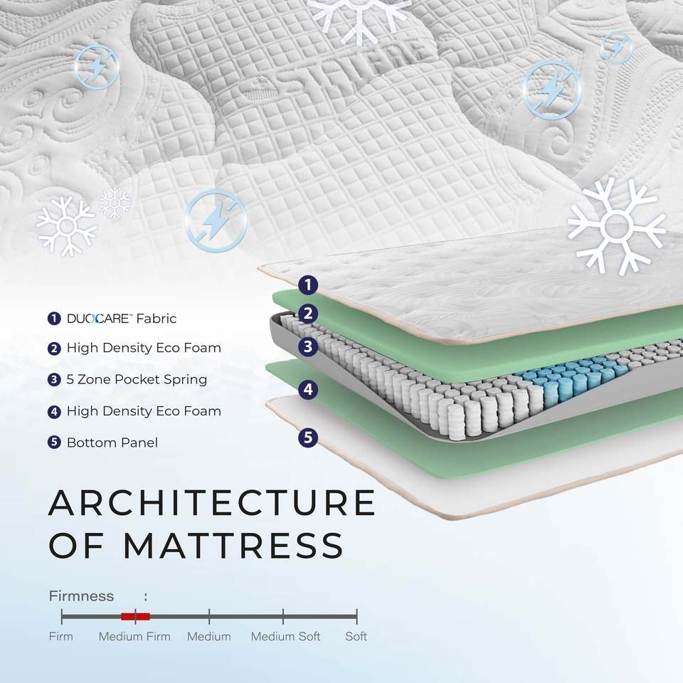 Ventaja:Muelles de 5 zonas con Statfree e IceSleep para un sueño fresco