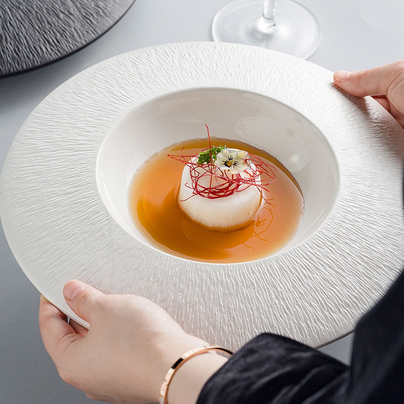 Tazón de Sopa Blanco de 11 Pulgadas con Relieve, de Porcelana Fina, Ecológico, Duradero, No Tóxico, para Restaurantes y Escuelas