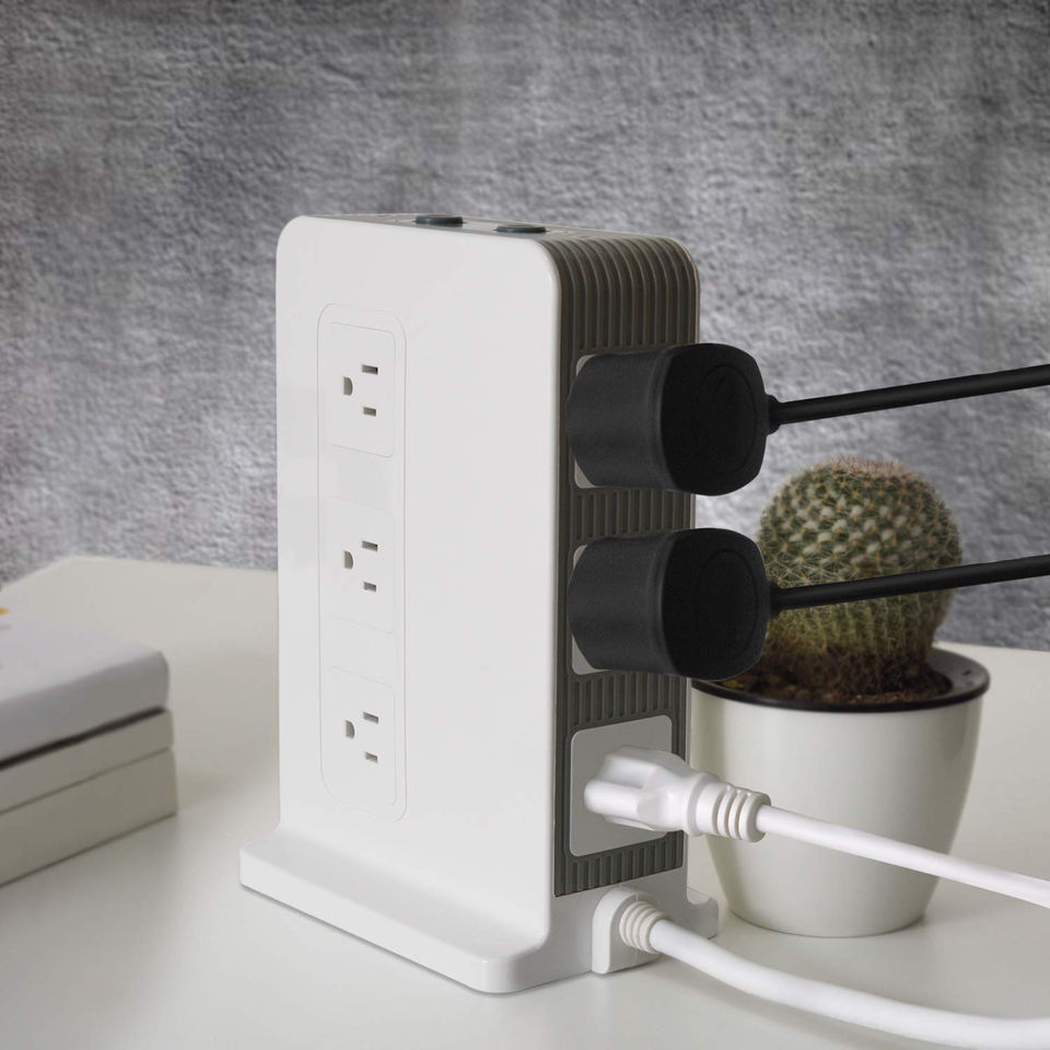 Torre de regleta con protección contra sobretensiones de 11 tomas y 2 USB