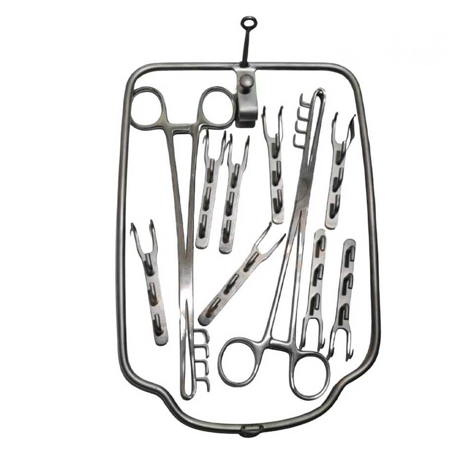 Kit de Cirugía de Rumenotomía Veterinaria de 11 Piezas, Instrumentos Quirúrgicos Manuales de Metal para Animales Grandes, Clase I, 1 Año de Garantía, Ganado Vacuno