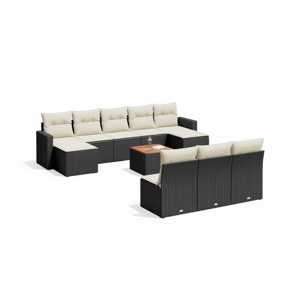 Conjunto de Sofás Modulares de Ratán Negro para Jardín, Muebles de Patio para Exteriores, Capacidad para 10 Personas, Diseño Moderno y Contemporáneo