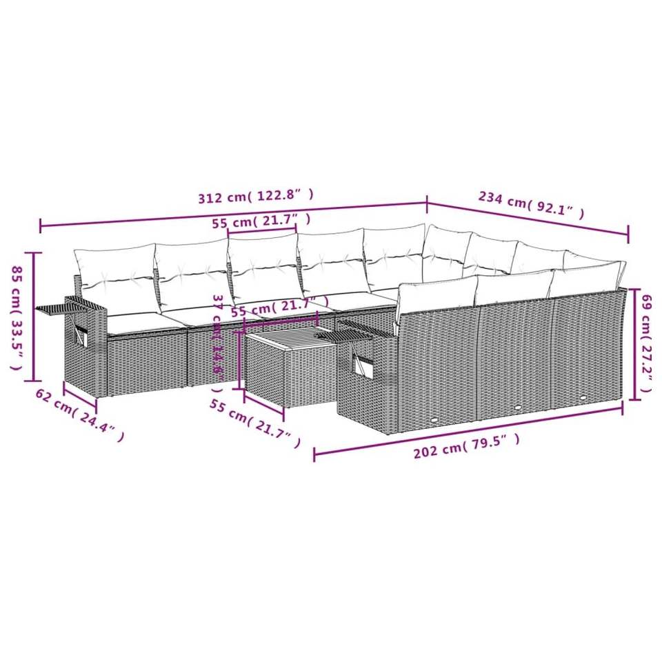 Juego de Sofás de Patio de 11 Piezas en Poliratán Negro con Cojines, Muebles Elegantes para Exteriores