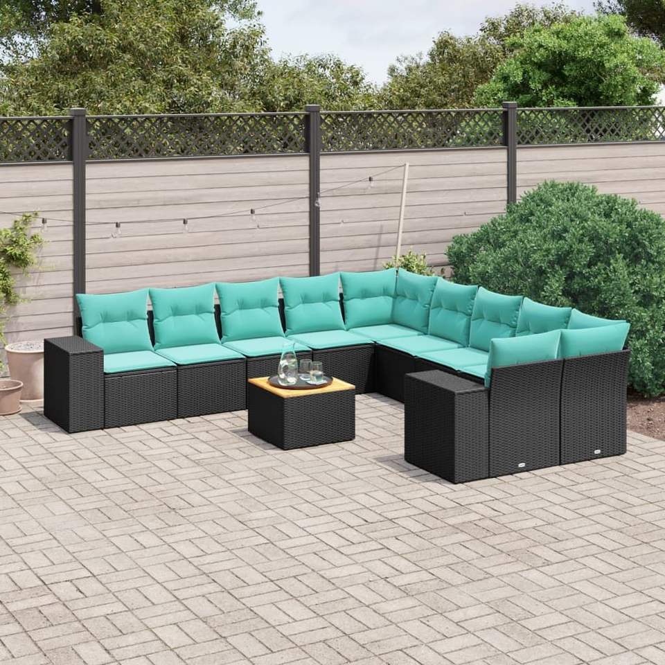 Juego de Sofás de Patio de 11 Piezas en Poliratán Negro con Cojines, Muebles Elegantes para Exteriores