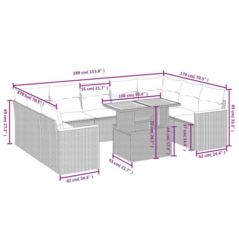 Juego de Sofás de Patio de 11 Piezas en Poliratán Negro con Cojines, Elegante Colección de Muebles para Exteriores
