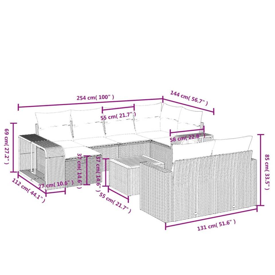 Juego de sofás de patio de ratán sintético gris de 11 piezas con cojines, colección de muebles duraderos para exteriores