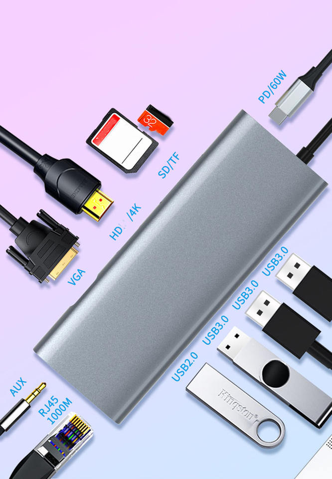 Interface:SD TF / usb 3.0/ usb2.0 port / PD charge/Audio port/ HD4K/VGA/RJ45