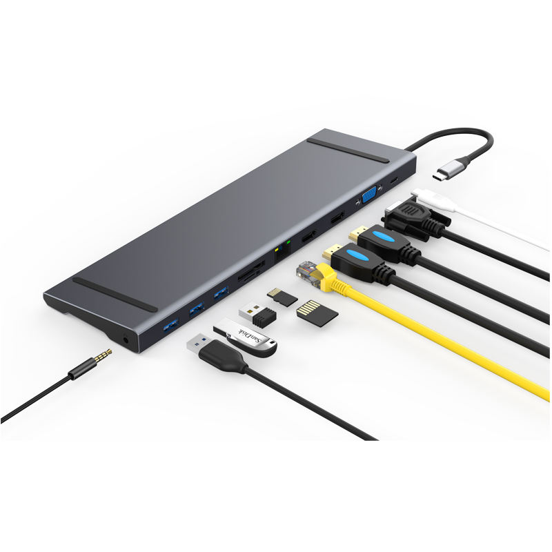 Concentrador de red multifuncional 11 en 1 tipo C, convertidor de estación de acoplamiento para ordenador portátil, carga rápida, VGA, triple pantalla USB