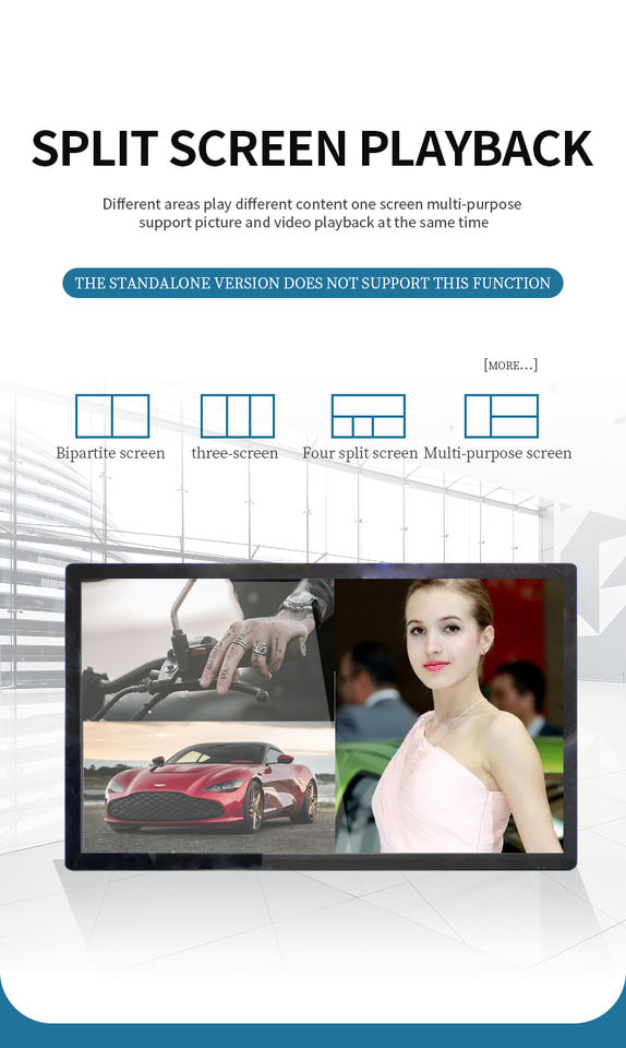 Uso:Publicidad publicar, Aeropuerto, Educación, Pantalla de platos, Ascensor, Sala de exposición, Hotel y restaurante suministros, Tienda de venta al por menor, -Servicio de negocios, Centro Comercial, Metro, Señalización, Bienvenido de la pantalla