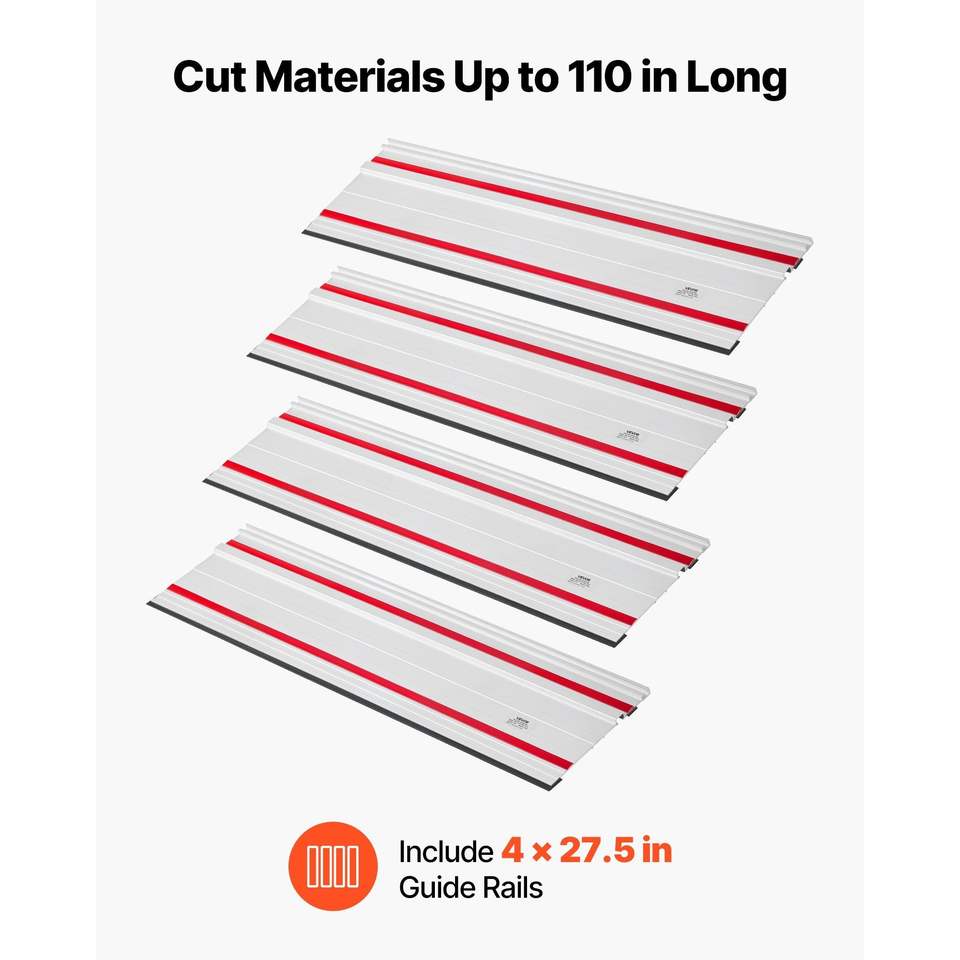 Kit de Sierra de Carril con Rango de Corte de 110 Pulgadas, 4 Guías Lineales de Aluminio Extruido de 27.5 y 3 Conectores Compatibles