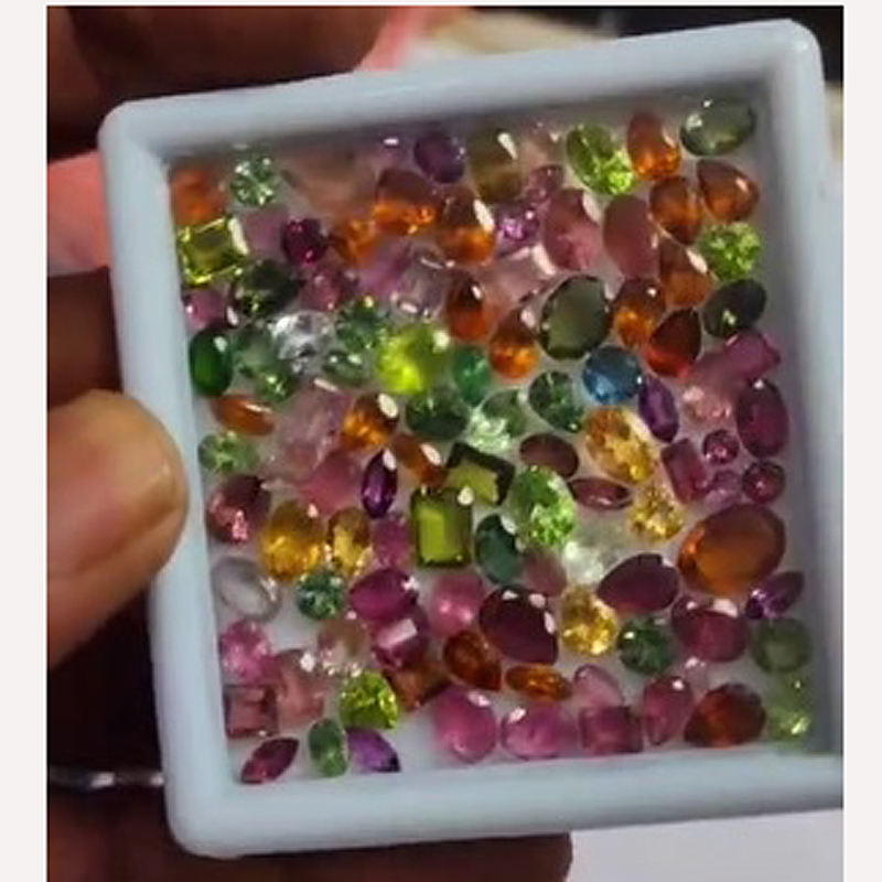 Nombre del producto:Lote de turmalina natural multicolor en corte cuadrado, marquesa, pera, baguette y redondo.