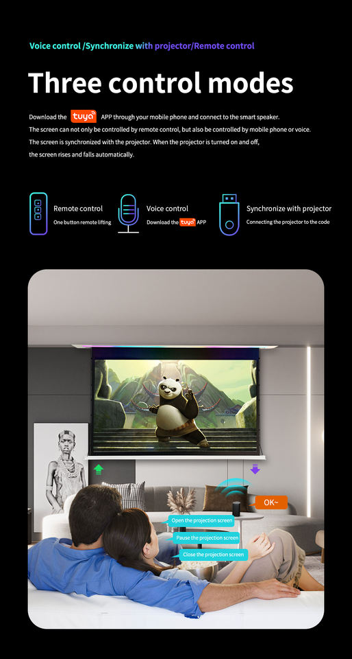 Tensión DE Pestaña de 110 "en la pantalla de proyector motorizada de techo Pantalla de proyección desplegable polifuncional con luz LED