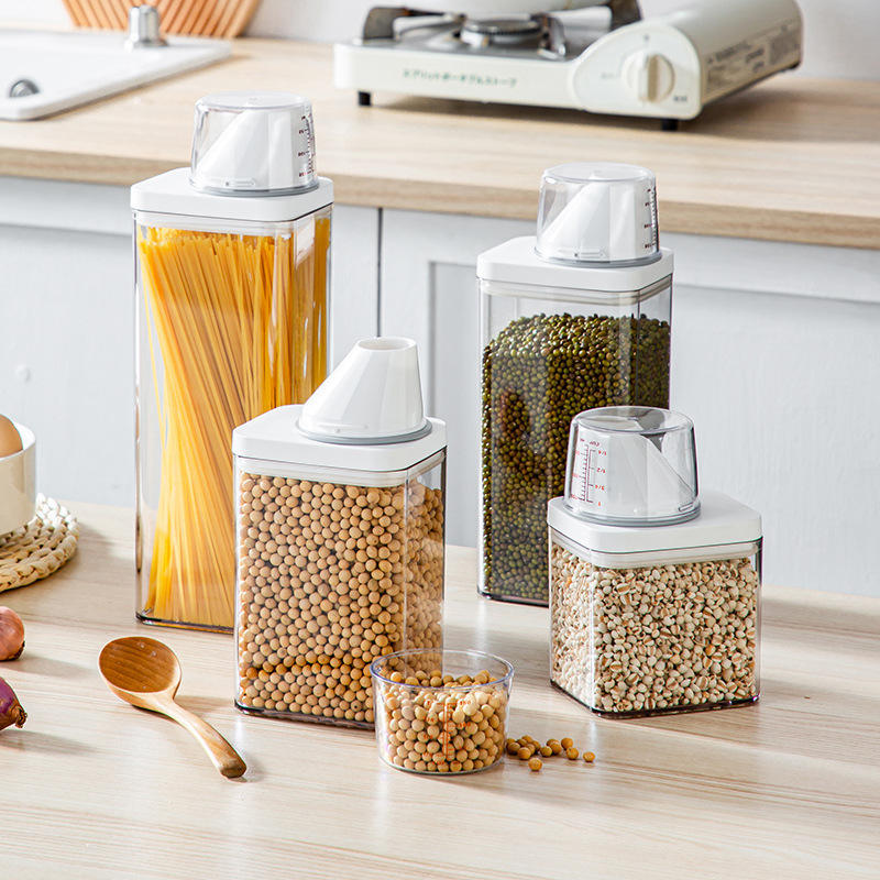 Contenedores herméticos de plástico de 1100ml para arroz, azúcar, nueces, alimentos para mascotas, almacenamiento de cereales con tapa blanca para almacenamiento de aperitivos y dulces