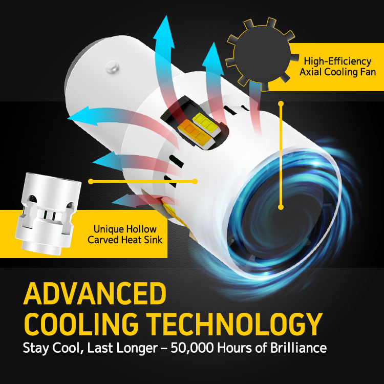 Bombilla LED 1157 Switchback con Ventilador 7443 3157 4257, Luz de Señal de Giro de Doble Color, Luz de Circulación Diurna, Sin Errores Canbus