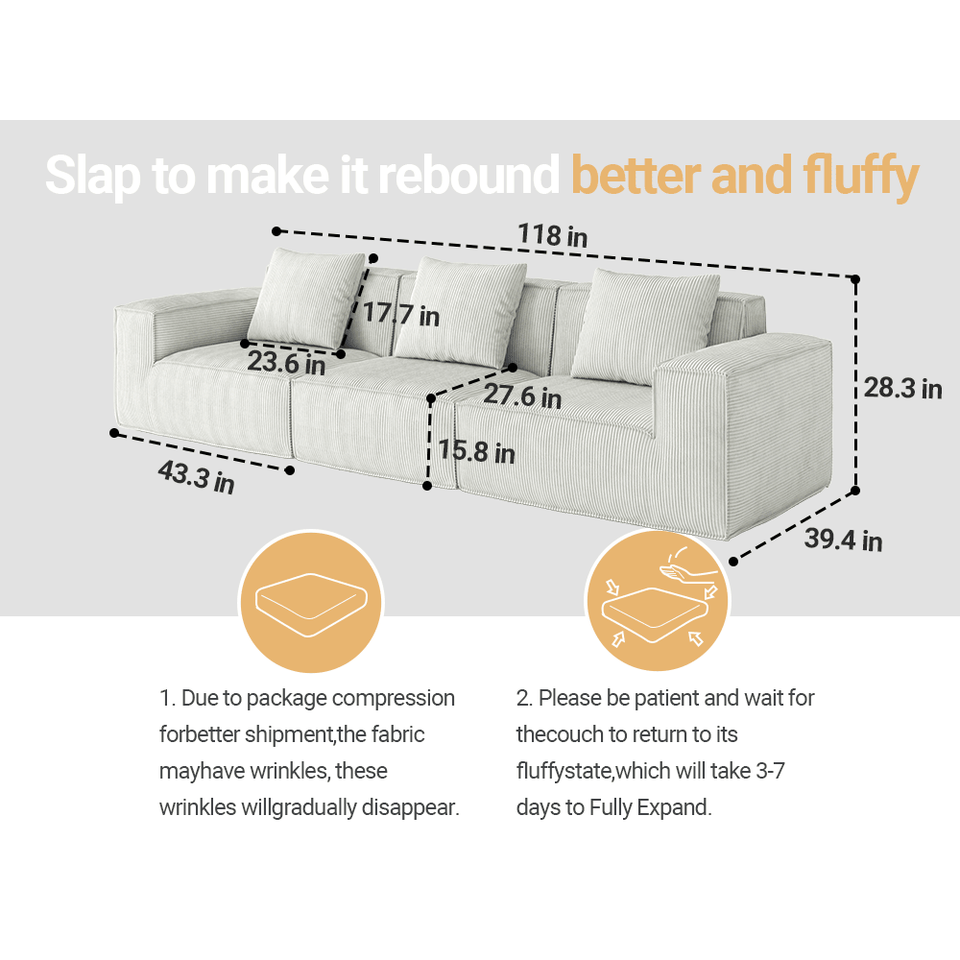 Juego de sofá blanco Modular de 118 pulgadas, cama combinada convertible de gran tamaño para 3 personas, configuración Flexible, sala de estar de pana suave