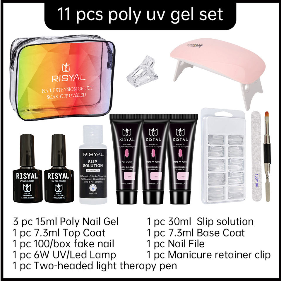 Set de 11 Piezas de Gel de Extensión de Poligel para Uñas, Kit de Poligeles para Arte de Uñas, Gel UV para Uñas, Pincel para Gel de Uñas con Lámpara UV/LED