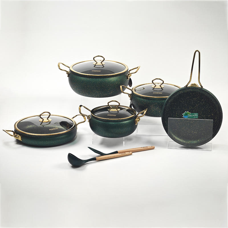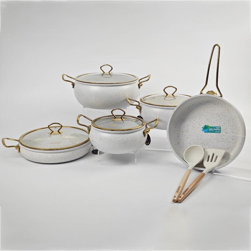 Juego de 11 Ollas y Sartenes Antiadherentes con Asas que No se Calientan, Incluye Sartén, Cacerolas y Sartén para Saltear
