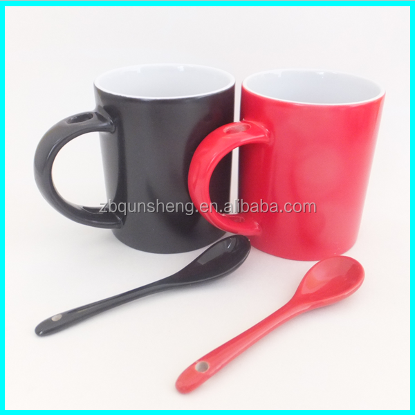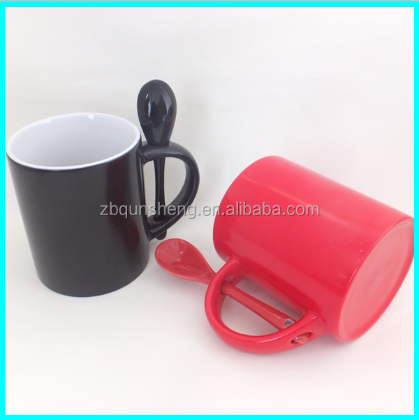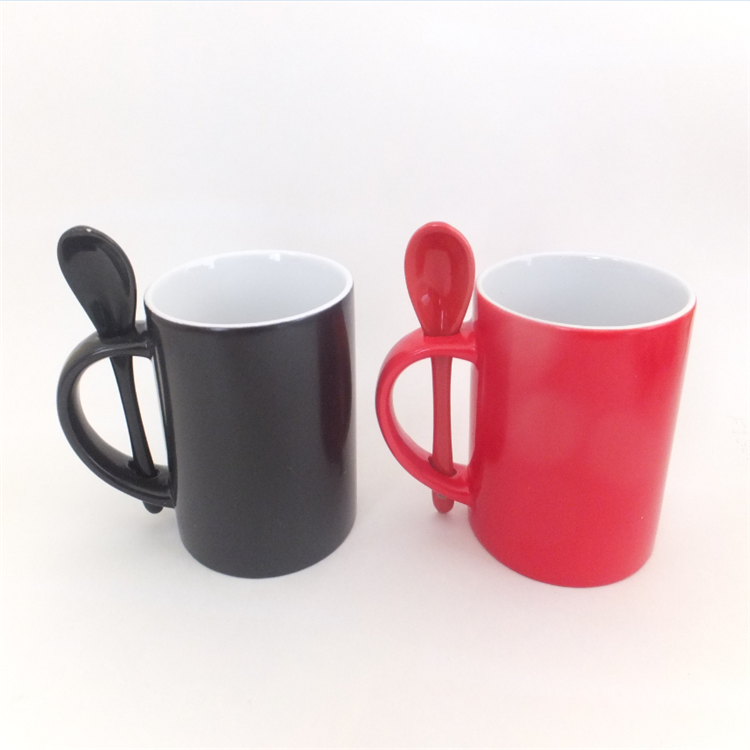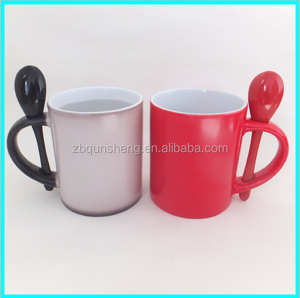 Taza mágica de cerámica, 11oz, cambio de color de agua caliente por sublimación con cuchara