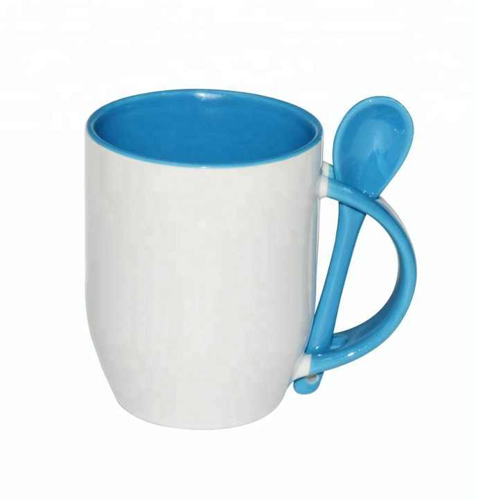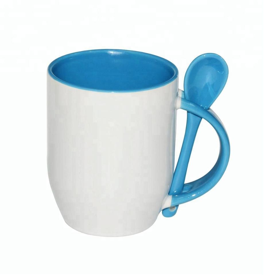 Taza de Cerámica de 11 oz con Cuchara, para Sublimación, con Recubrimiento de Color