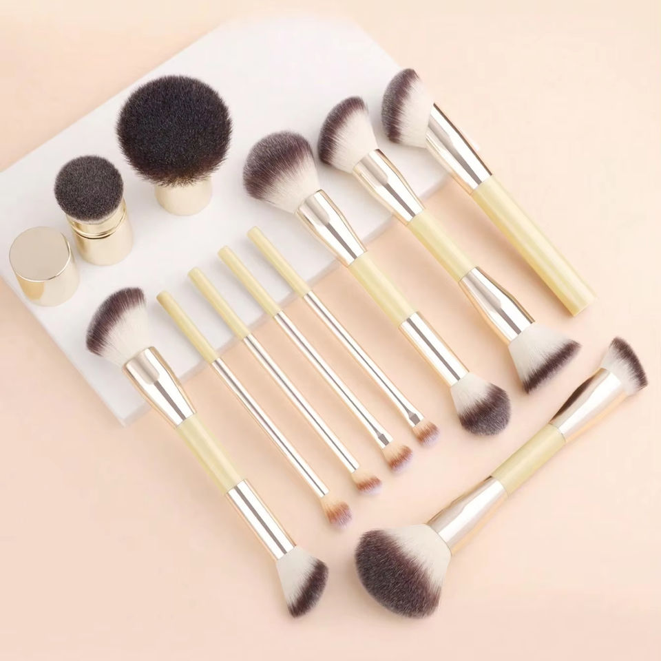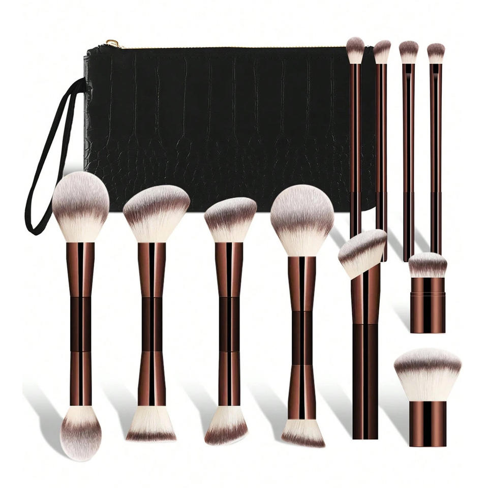 11PS Juego completo de brochas de maquillaje de función completa Juego de herramientas de maquillaje profesional súper suave de lujo marrón