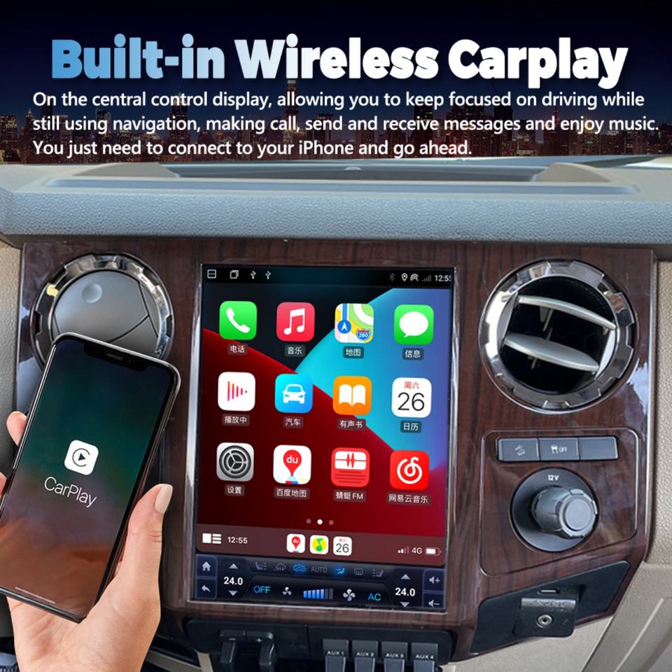 Radio con Pantalla Android Tesla de 12.1 Pulgadas para Ford F250 F350 F450 F650 2008-2016, Reproductor Multimedia para Automóvil con GPS, Carplay, Reproductor de Video, Unidad Principal Estéreo