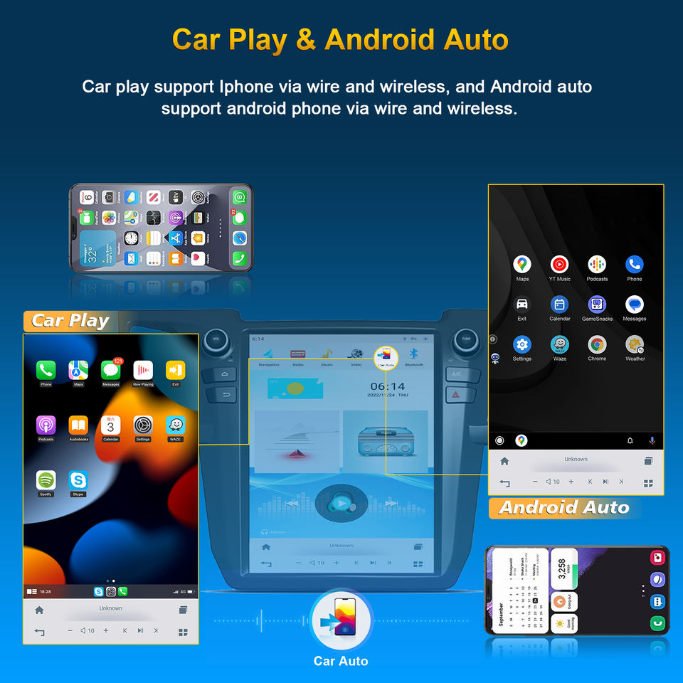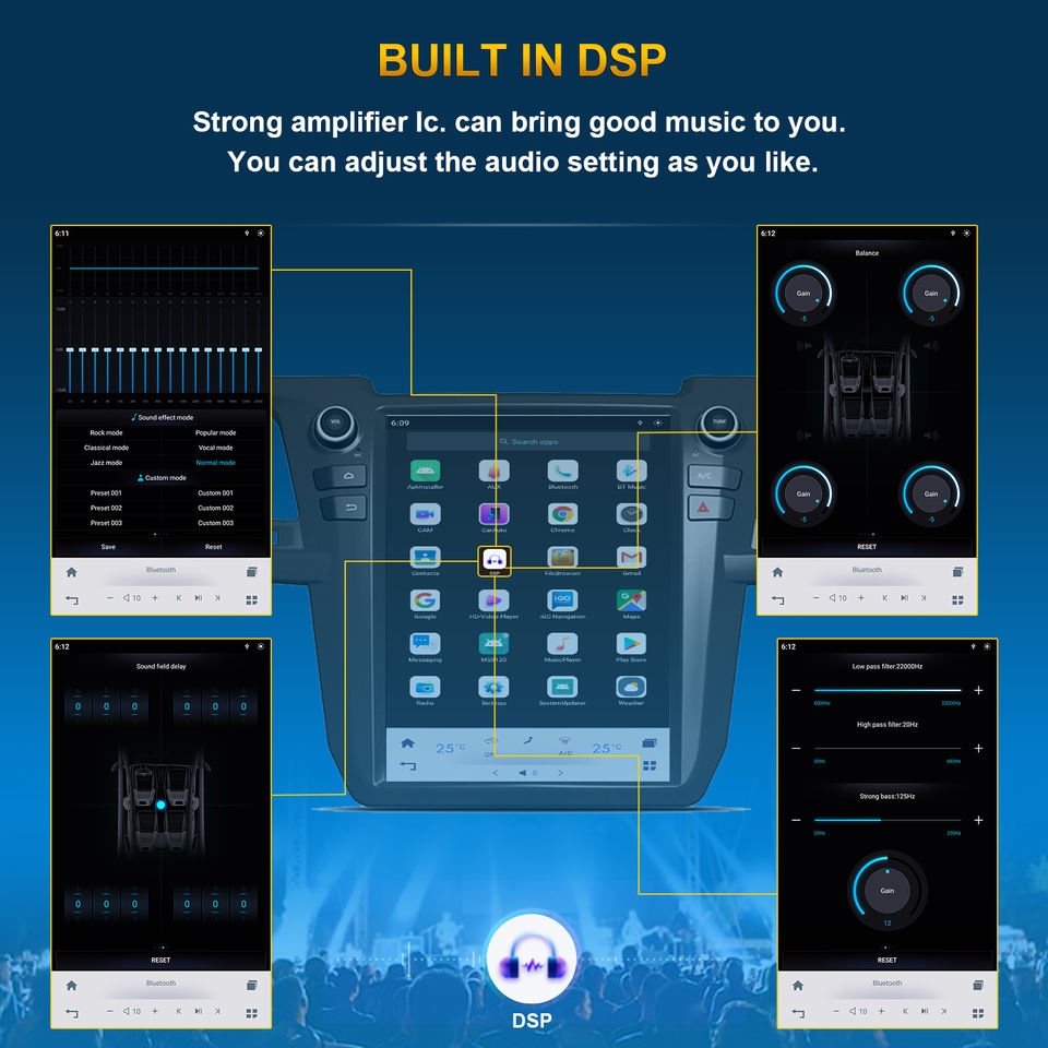 Estéreo, DSP, CarPlay, Enlace espejo, Android auto, Pantalla dividida, Administrador de archivos, Coche de Control de volante