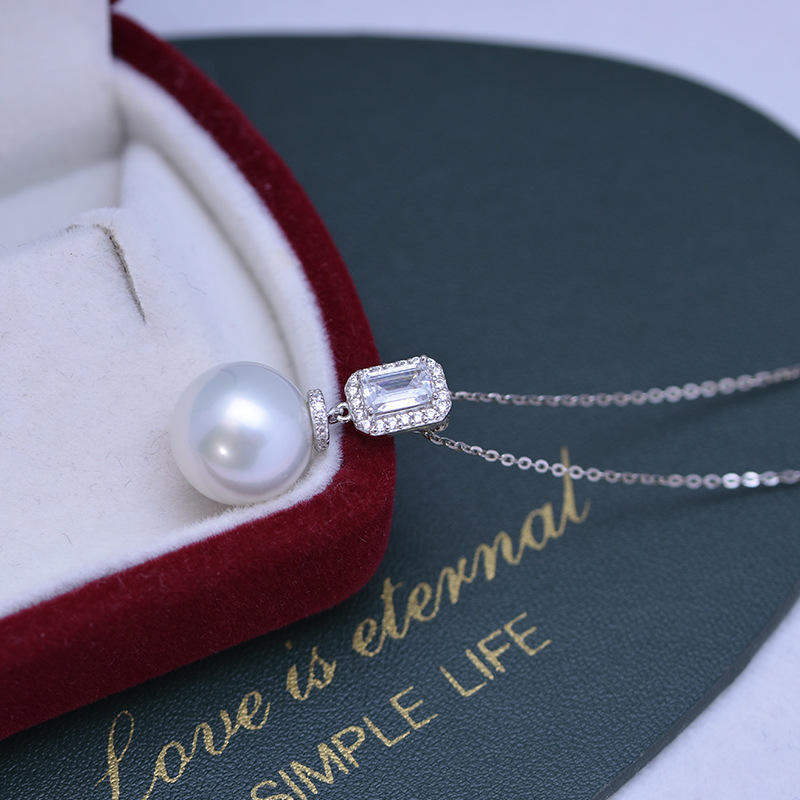 Collar con Colgante de Perla de Agua Dulce Blanca de 12-13 mm para Mujer, Plata S925 con Luz Intensa y Pequeñas Imperfecciones con Diseño de Flores