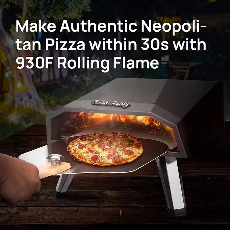 Horno de Pizza de Gas portátil para acampar al aire libre de 12 16 pulgadas, máquina de Pizza automática comercial con piedra para Pizza