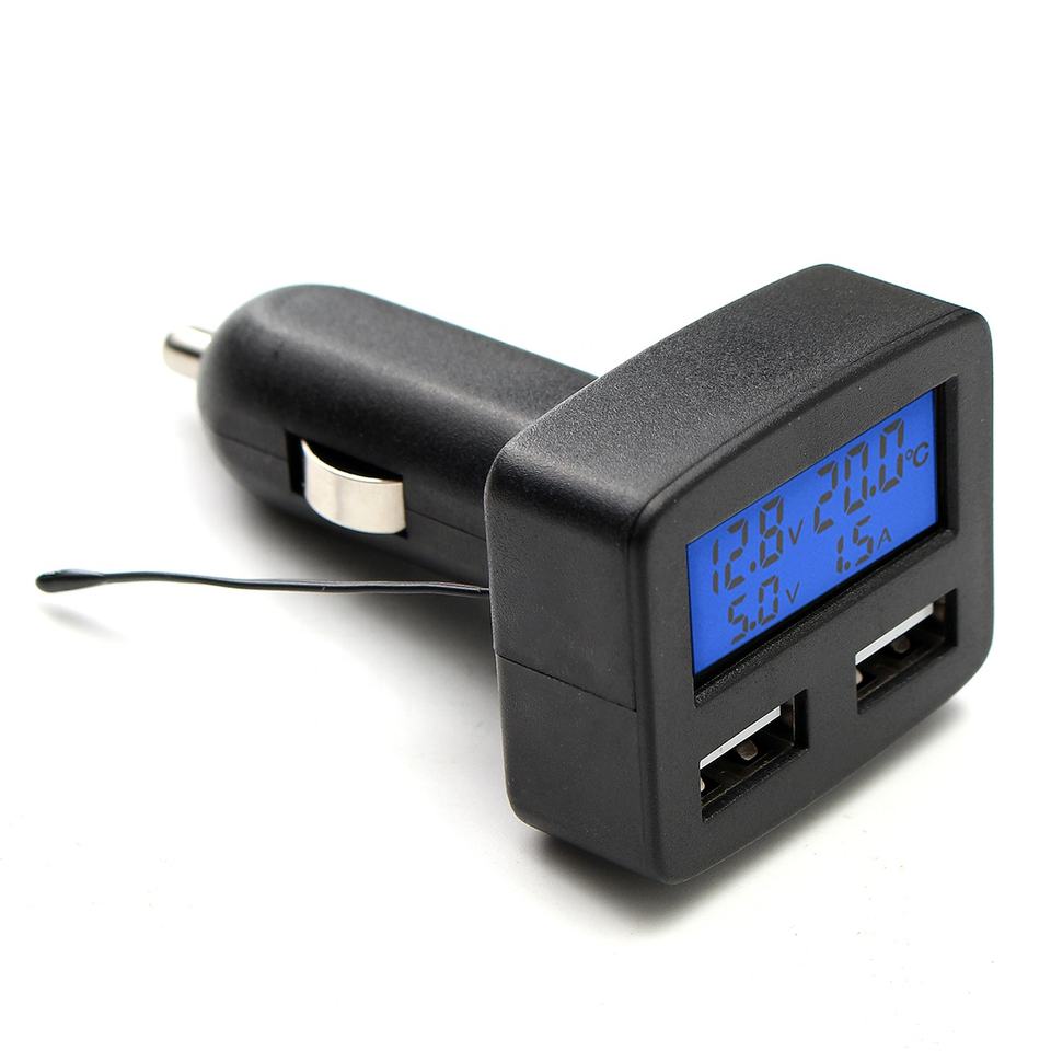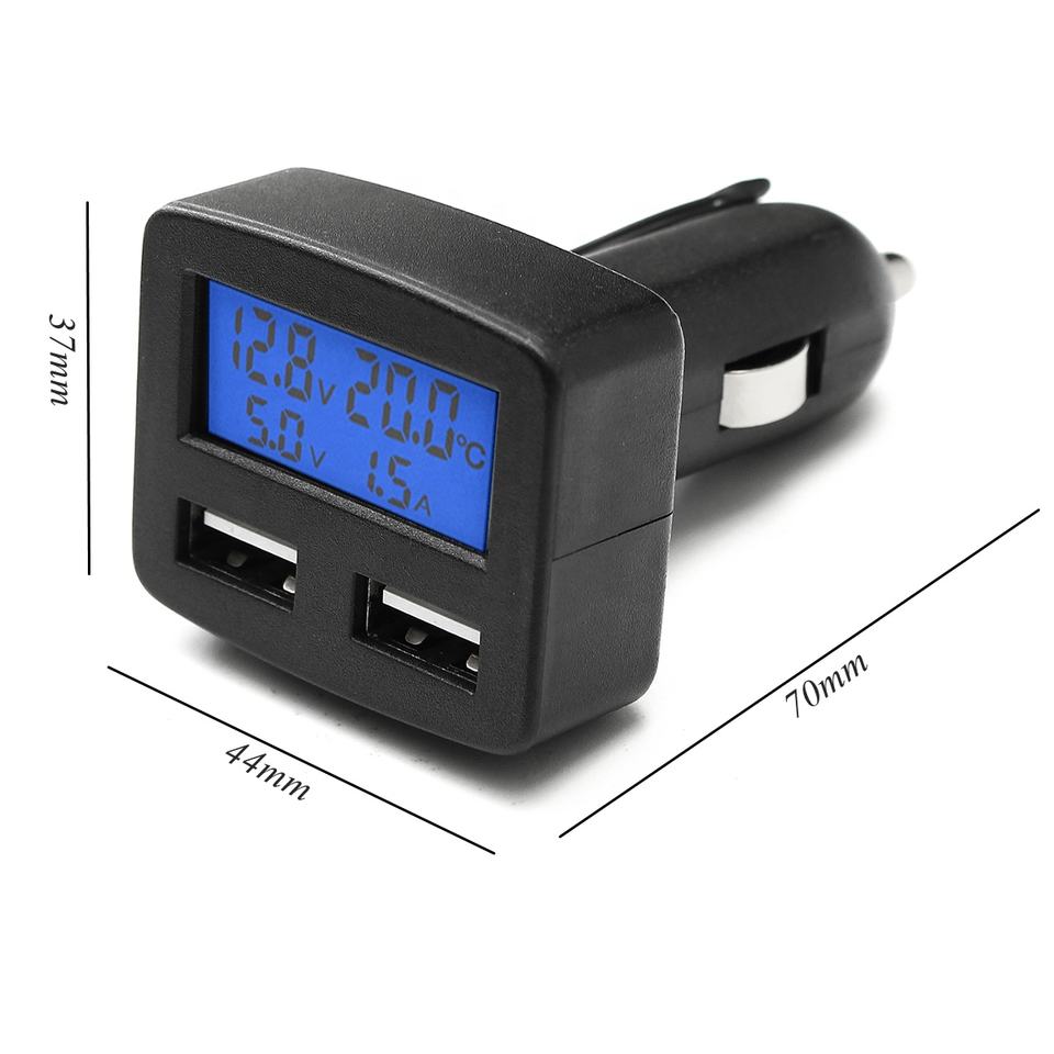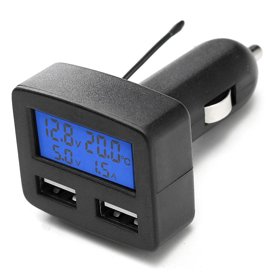 Cargador de coche multifuncional 5 en 1 con USB Dual, 12/24V, enchufe y voltímetro con pantalla LCD de temperatura