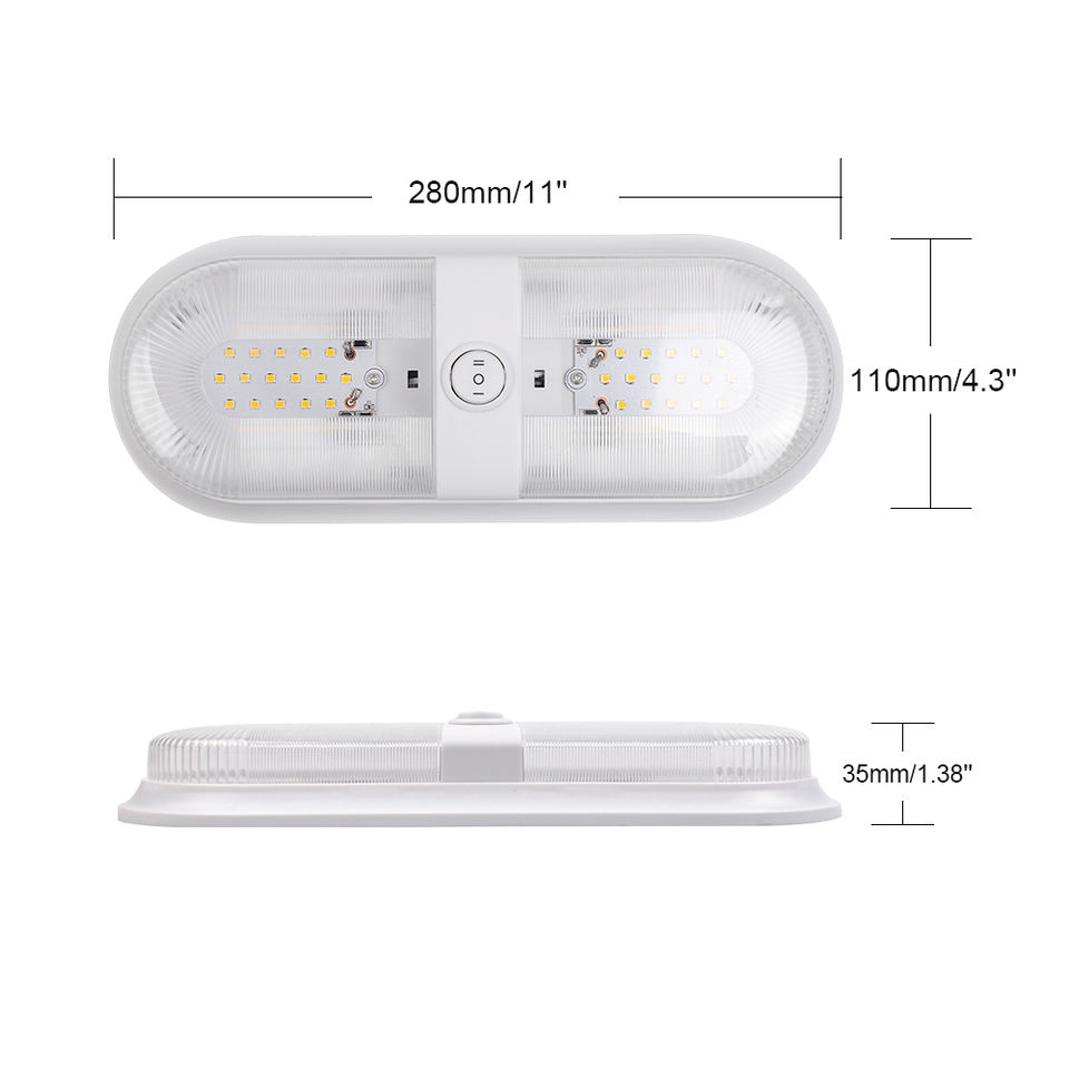 12/24V LED RV Caravana Luz de techo doble, iluminación interior RV con interruptor para techo de caravana de remolque, blanco