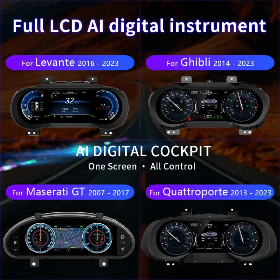 Panel de Instrumentos Digital con Pantalla LCD IPS de 12.3'' y GPS, Android Auto, Velocímetro, Conexión USB para Maserati Levante 2016-2023