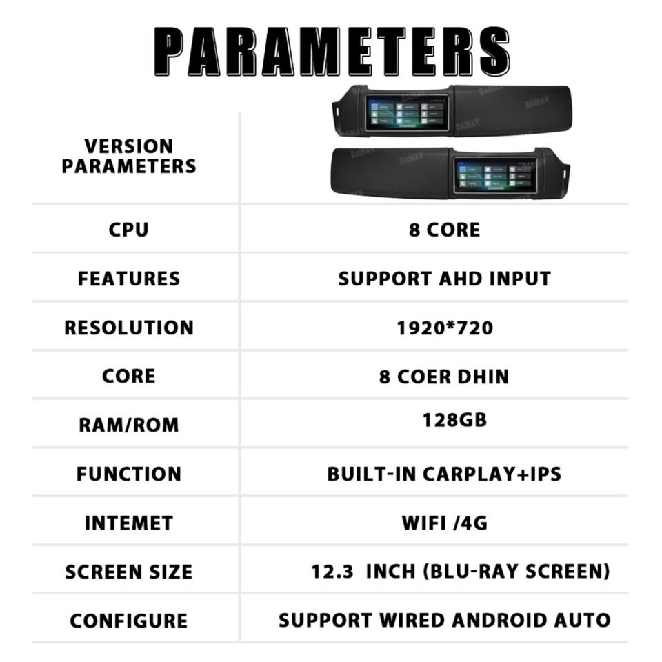 CarPlay, Enlace espejo, Android auto, Compatible con Bluetooth, Construir-En DSP, MP3/MP4, Pantalla táctil, Visor de imágenes, Sintonizador Radio, Control remoto, Amplificador, 3D mapa, Cámara de copia de seguridad, Guía de voz, Control del Volante, Pantalla dividida, Carretera de planificación, Distancia de advertencia, Invertir la ayuda, En directo/aparcamiento, En directo/Live el tráfico, MultiMedia apoya, De modo Dual, sistema de navegación, Velocidad de alerta, Brújula digital, Construir-en el micrófono, La voz de interacción, Descarga la aplicación desde Play StoreFunción