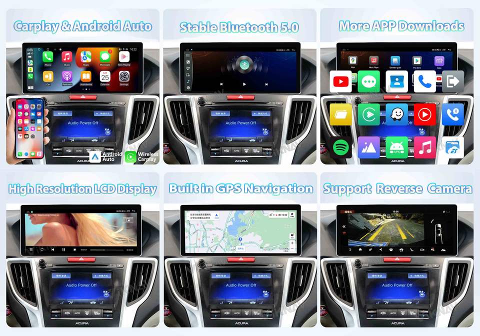 Reproductor Multimedia con Pantalla Táctil de 12.3 Pulgadas, Navegación GPS, Carplay Inalámbrico, Radio Estéreo para Automóvil Android para Honda Acura TLX 2015-2020