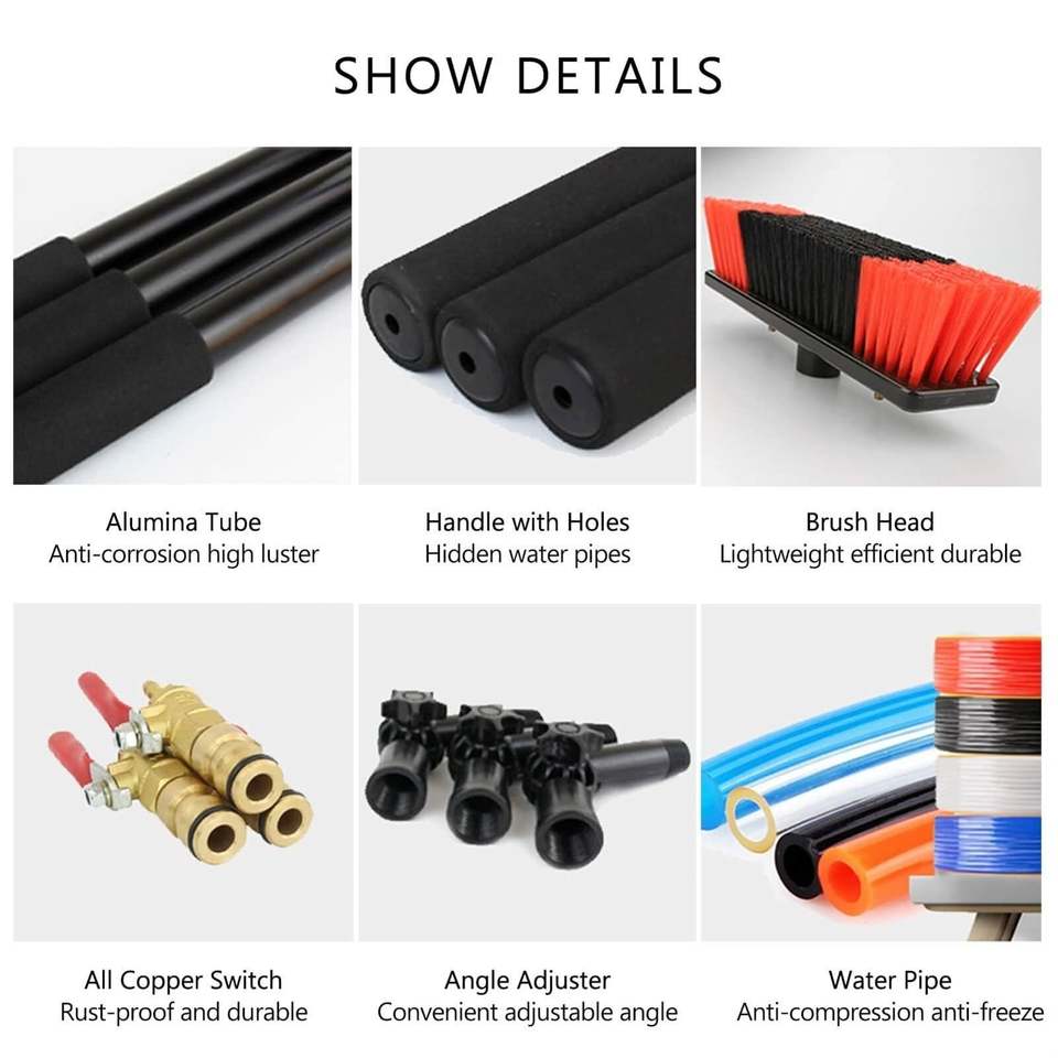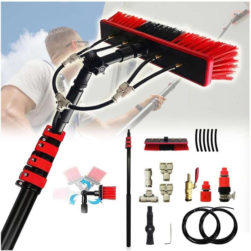 Sistema de poste telescópico para limpieza alimentado por agua de 12–36 pies, multiusos, con kit de extensión