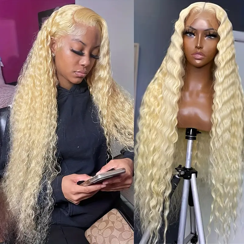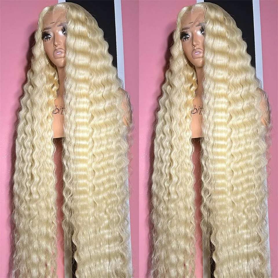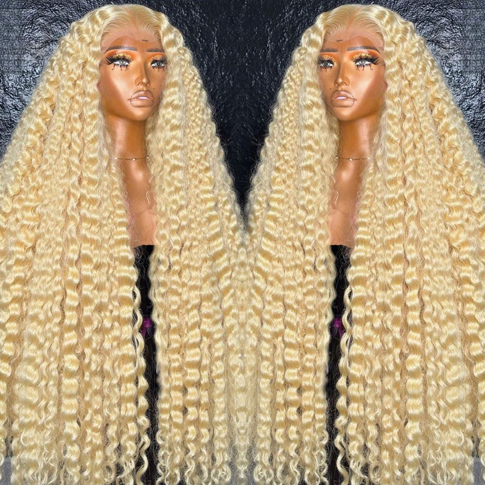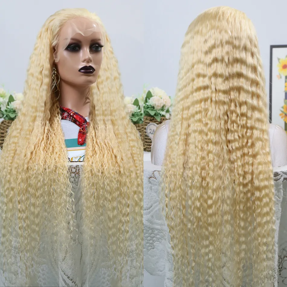 Peluca de Cabello Rizado Rubio 613 de 12-36 Pulgadas de Largo, con Encaje Frontal 13*4, Ondas de Agua, Pelucas Largas y Rizadas Rubias para Mujeres Sexys