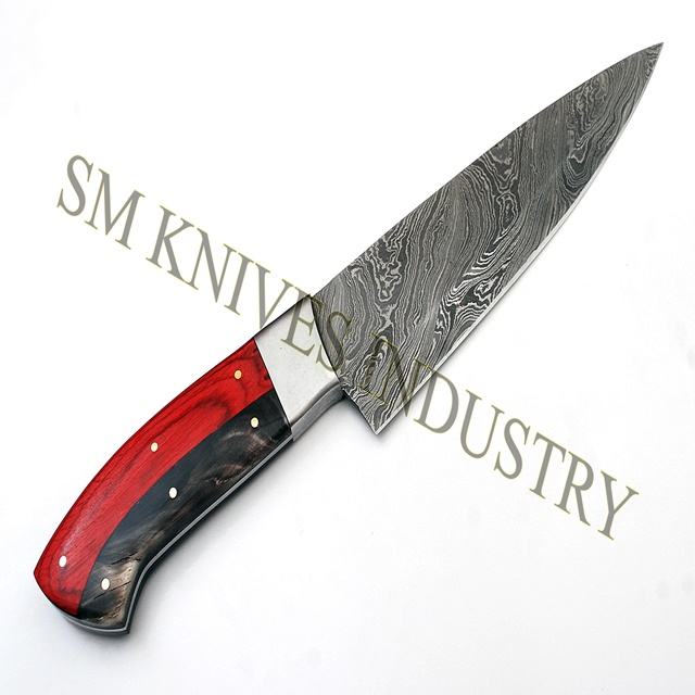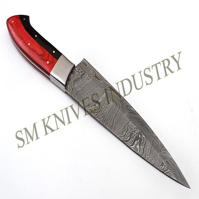 Cuchillo de Chef de cocina Damasco hecho a mano personalizado de 12,5 pulgadas (SMK1156) Mango de acero con hoja de acero al carbono
