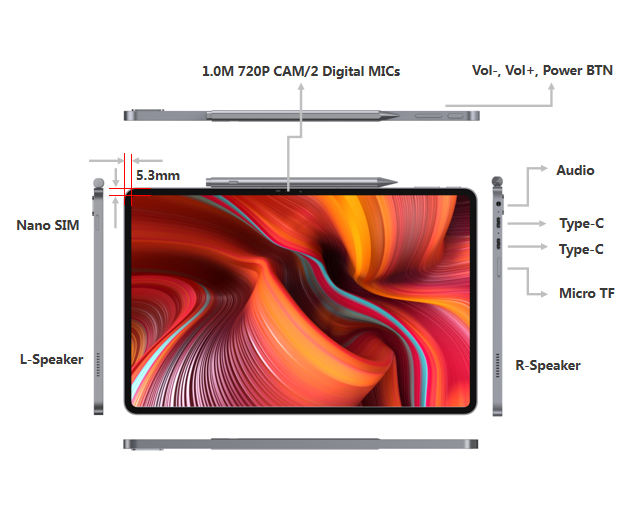 Nombre del producto:Tablet PC convertible 2 en 1 con pantalla de 12.6 pulgadas
