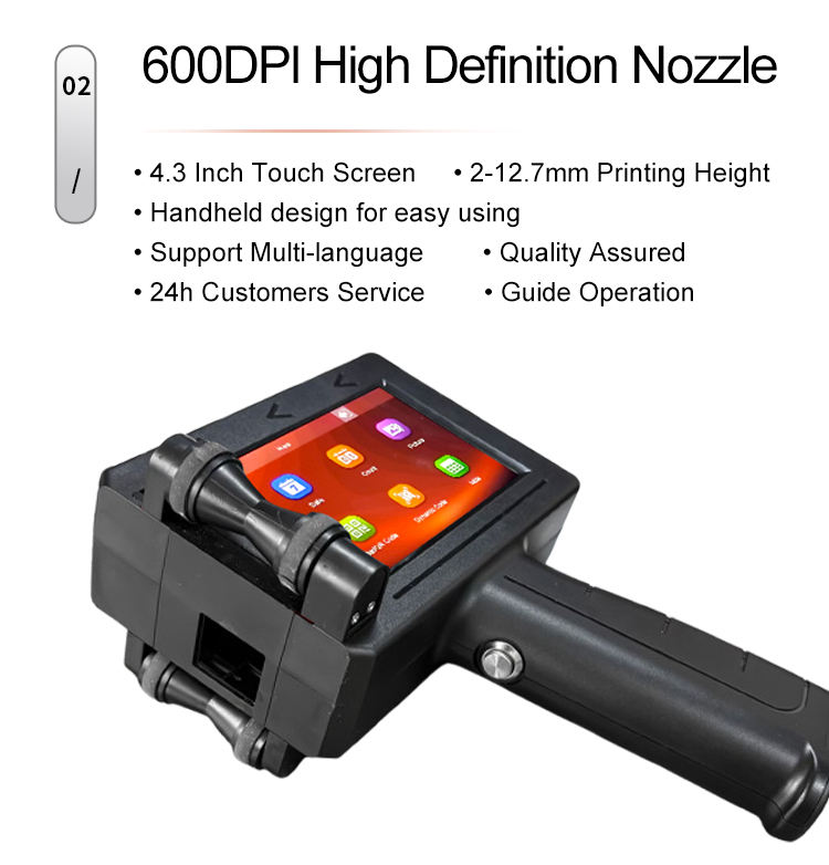 Impresora de Inyección de Tinta Térmica Portátil de 12.7mm con Tinta de Secado Rápido para Imprimir Fecha, Hora, Código de Lote y Logotipo