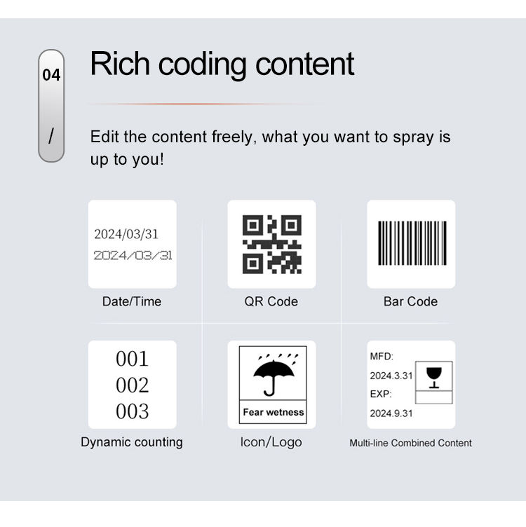 Tipo de tinta: La tinta de secado rápido se seca rápidamente, evita las manchas y asegura que el contenido impreso permanezca legible y duradero, incluso en superficies no porosas.
