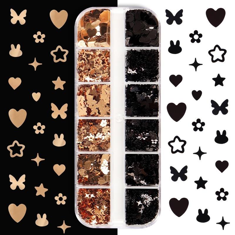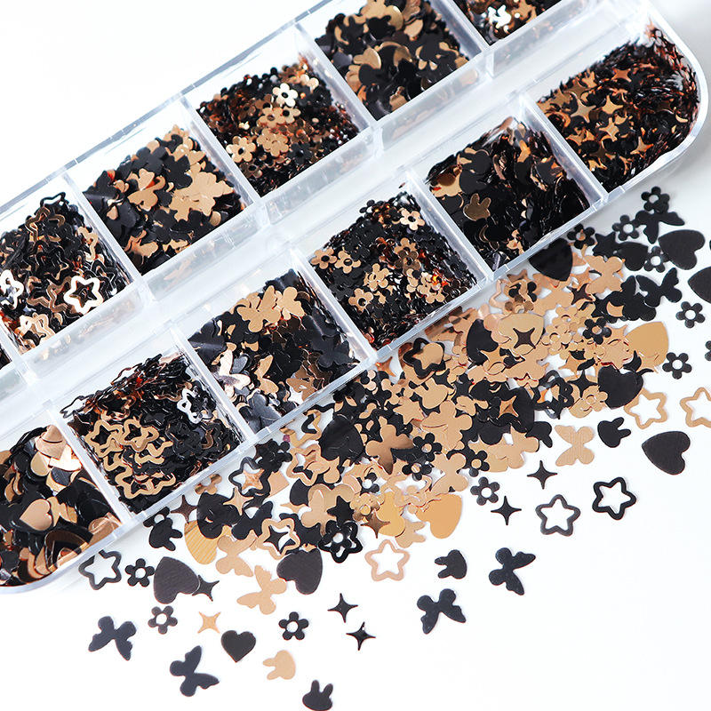 12 cajas de oro negro mariposa conejo amor estrella fiesta belleza maquillaje pestañas postizas arte de uñas adornado lentejuelas