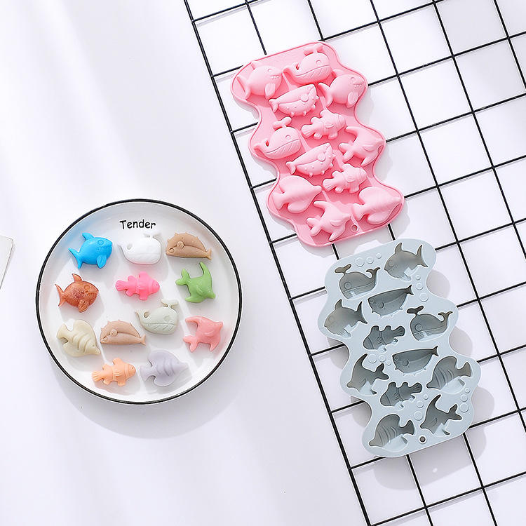 Moldes de silicona para chocolate de 12 cavidades, 6 formas diferentes de peces marinos, sin BPA, Ocean World, molde para pastel de hielo, molde para pastel de pudín, bolsa OPP