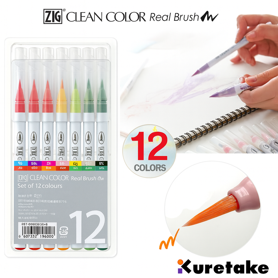Kuretake ZIG Set de 12 colores - Pincel AcuarelaTipo